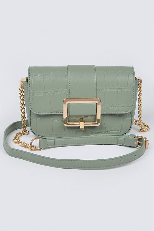 Faux Leather Buckle Crossbody Bag
